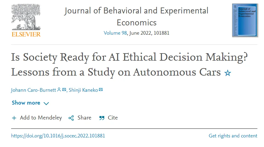 “事實(shí)上,當(dāng)參與者被明確要求將他們的答案與社會的答案區(qū)分開來時,人工智能和人類司機(jī)之間的差異就會消失。”廣島大學(xué)人文社會科學(xué)研究生院助理教授 Johann Caro-Burnett 說。